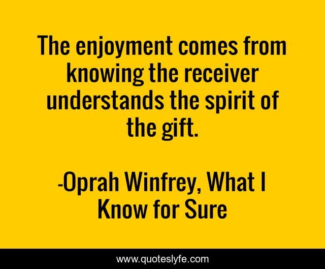 "Oprah Winfrey, What I Know for Sure Quotes." Quoteslyfe.com, 2025. Fri. 05 Dec. 2025. <https://www.quoteslyfe.com/quote/The-enjoyment-comes-from-knowing-the-receiver-172352>.