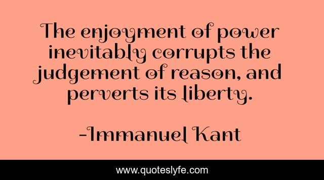 "Immanuel Kant Quotes." Quoteslyfe.com, 2025. Sun. 07 Dec. 2025. <https://www.quoteslyfe.com/quote/The-enjoyment-of-power-inevitably-corrupts-the-57123>.