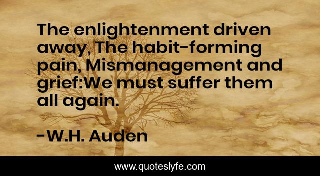 This page presents the quote "The enlightenment driven away, The habit-forming pain, Mismanagement and grief:We must suffer them all again.". Author of this quote is W.H. Auden. This quote is about forgetting, naivety, evil, innocence,.