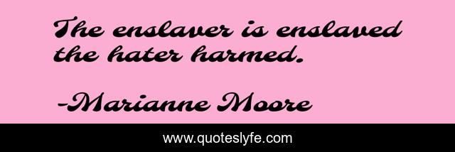 This page presents the quote "The enslaver is enslaved the hater harmed.". Author of this quote is Marianne Moore. .
