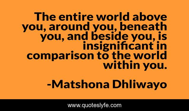 "Matshona Dhliwayo Quotes." Quoteslyfe.com, 2025. Sat. 06 Dec. 2025. <https://www.quoteslyfe.com/quote/The-entire-world-above-you-around-you-15490>.