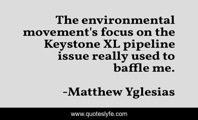 This page presents the quote "The environmental movement's focus on the Keystone XL pipeline issue really used to baffle me.". Author of this quote is Matthew Yglesias. This quote is about me, focus, movement,.
