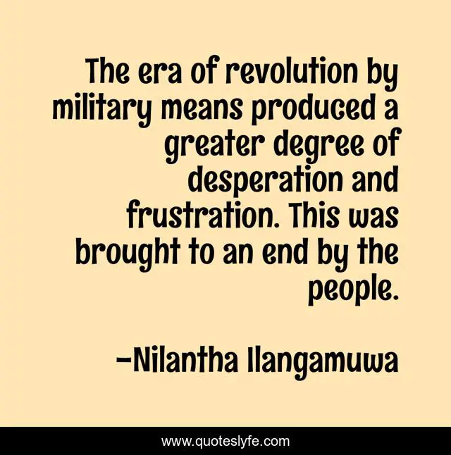 "Nilantha Ilangamuwa Quotes." Quoteslyfe.com, 2025. Mon. 08 Dec. 2025. <https://www.quoteslyfe.com/quote/The-era-of-revolution-by-military-means-57420>.
