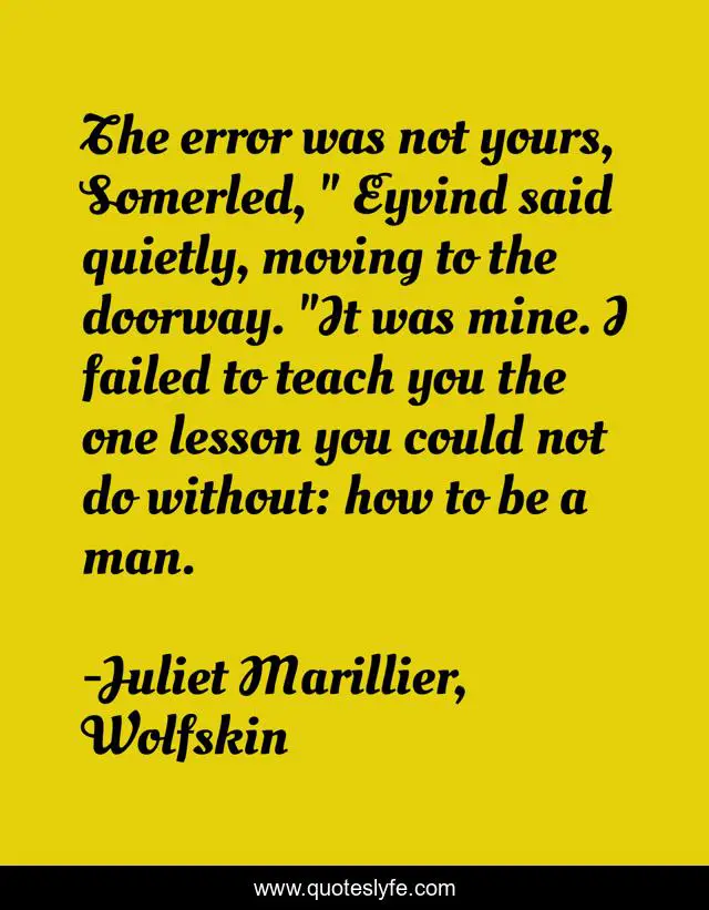 "Juliet Marillier, Wolfskin Quotes." Quoteslyfe.com, 2025. Fri. 05 Dec. 2025. <https://www.quoteslyfe.com/quote/The-error-was-not-yours-Somerled-Eyvind-50899>.