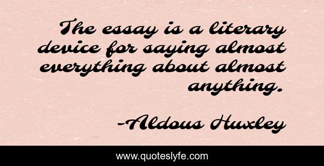 This page presents the quote "The essay is a literary device for saying almost everything about almost anything.". Author of this quote is Aldous Huxley. .
