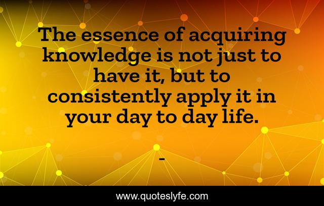 This page presents the quote "The essence of acquiring knowledge is not just to have it, but to consistently apply it in your day to day life.". Author of this quote is . This quote is about gain-knowledge-and-using-it, applied-knowledge, edmond-mbiaka, your-day-to-day-life, acquiring-knowledge, applying-what-you-know,.