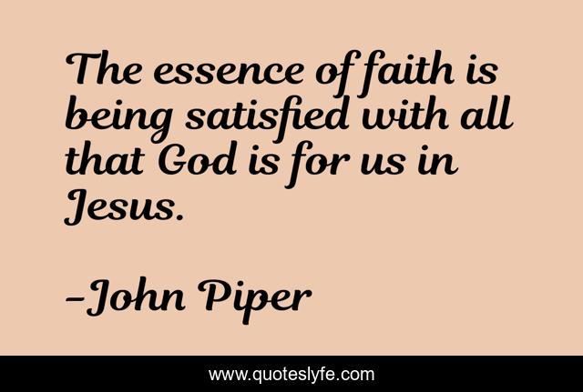 This page presents the quote "The essence of faith is being satisfied with all that God is for us in Jesus.". Author of this quote is John Piper. This quote is about being, god, essence,.