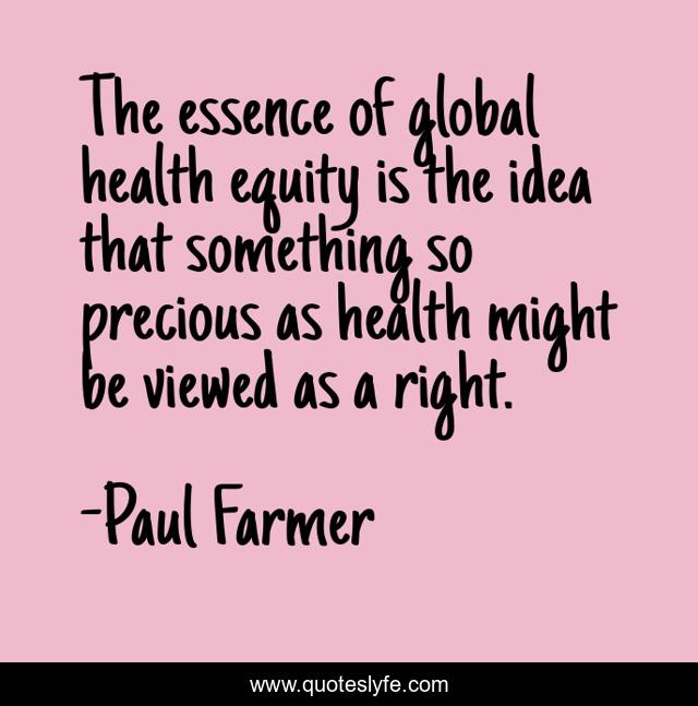This page presents the quote "The essence of global health equity is the idea that something so precious as health might be viewed as a right.". Author of this quote is Paul Farmer. This quote is about right, idea, equity,.