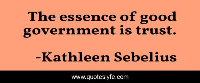 This page presents the quote "The essence of good government is trust.". Author of this quote is Kathleen Sebelius. This quote is about good, government,.
