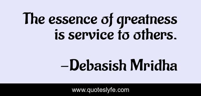 This page presents the quote "The essence of greatness is service to others.". Author of this quote is Debasish Mridha. This quote is about life, love, knowledge, inspirational, intelligence, philosophy, wisdom, quotes, affection,.