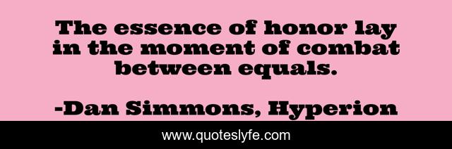 This page presents the quote "The essence of honor lay in the moment of combat between equals.". Author of this quote is Dan Simmons, Hyperion. .