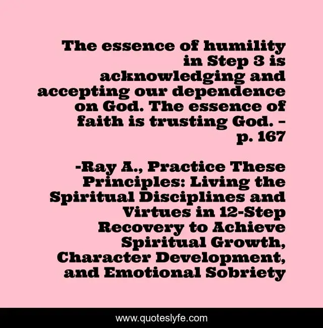 "Ray A., Practice These Principles: Living the Spiritual Disciplines and Virtues in 12-Step Recovery to Achieve Spiritual Growth, Character Development, and Emotional Sobriety Quotes." Quoteslyfe.com, 2025. Sun. 07 Dec. 2025. <https://www.quoteslyfe.com/quote/The-essence-of-humility-in-Step-3-179629>.