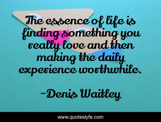 This page presents the quote "The essence of life is finding something you really love and then making the daily experience worthwhile.". Author of this quote is Denis Waitley. This quote is about life, love, daily, affection,.