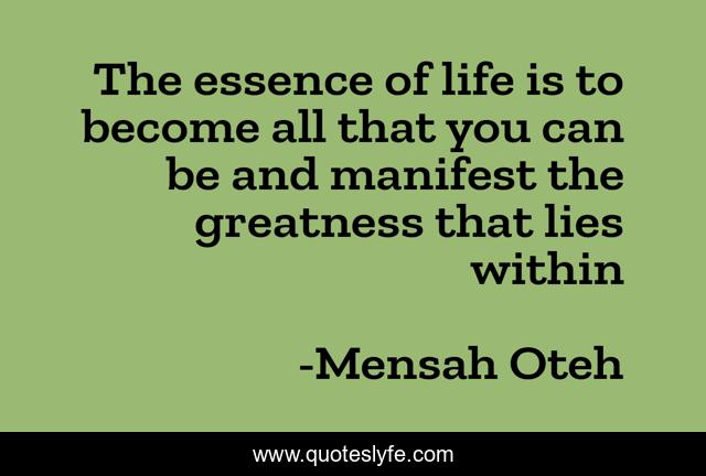 "Mensah Oteh Quotes." Quoteslyfe.com, 2025. Mon. 08 Dec. 2025. <https://www.quoteslyfe.com/quote/The-essence-of-life-is-to-become-48958>.