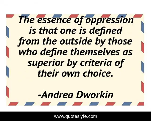 "Andrea Dworkin Quotes." Quoteslyfe.com, 2025. Sat. 06 Dec. 2025. <https://www.quoteslyfe.com/quote/The-essence-of-oppression-is-that-one-101525>.