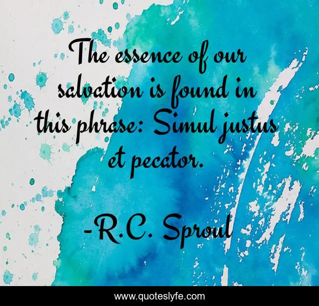 This page presents the quote "The essence of our salvation is found in this phrase: Simul justus et pecator.". Author of this quote is R.C. Sproul. This quote is about god, salvation,.