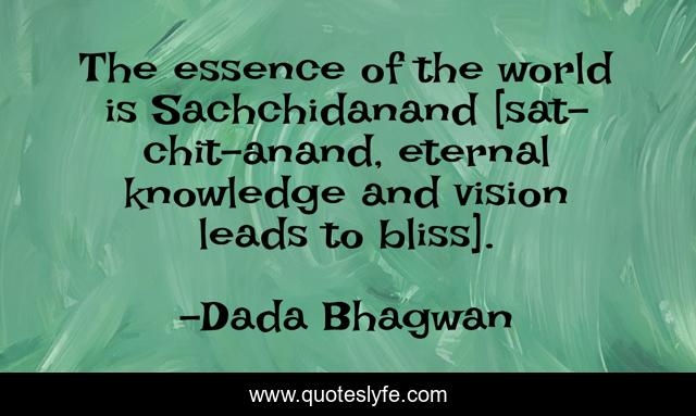 This page presents the quote "The essence of the world is Sachchidanand [sat-chit-anand, eternal knowledge and vision leads to bliss].". Author of this quote is Dada Bhagwan. This quote is about spiritual, bliss, knowledge, vision,.