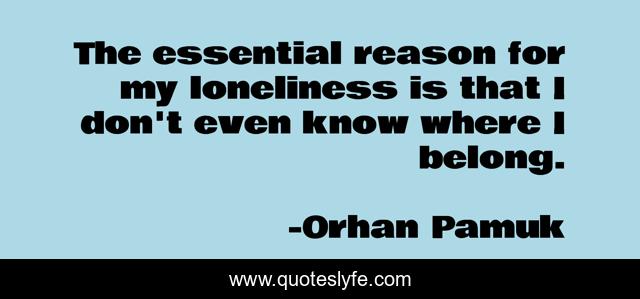 This page presents the quote "The essential reason for my loneliness is that I don't even know where I belong.". Author of this quote is Orhan Pamuk. This quote is about loneliness, philosophy-of-life, philosophy, life,.