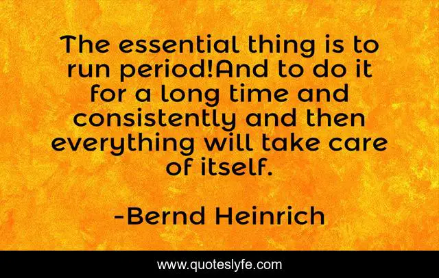 This page presents the quote "The essential thing is to run period!And to do it for a long time and consistently and then everything will take care of itself.". Author of this quote is Bernd Heinrich. .