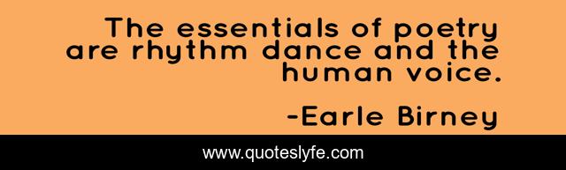 This page presents the quote "The essentials of poetry are rhythm dance and the human voice.". Author of this quote is Earle Birney. This quote is about poets, poetry,.