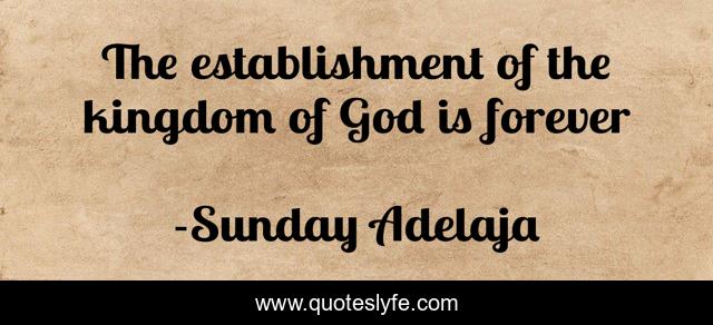 This page presents the quote "The establishment of the kingdom of God is forever". Author of this quote is Sunday Adelaja. This quote is about god, forever, establishment,.