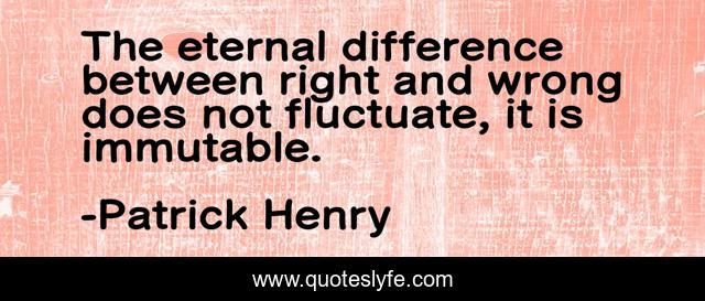 This page presents the quote "The eternal difference between right and wrong does not fluctuate, it is immutable.". Author of this quote is Patrick Henry. This quote is about right-and-wrong, sin, morality,.