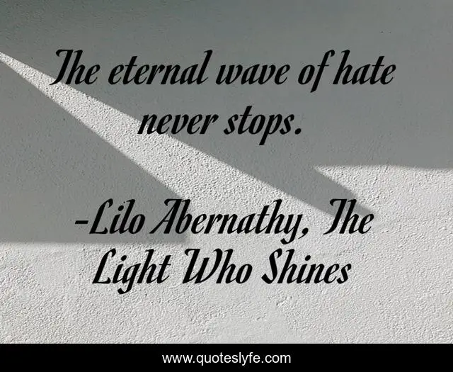 "Lilo Abernathy, The Light Who Shines Quotes." Quoteslyfe.com, 2025. Sat. 06 Dec. 2025. <https://www.quoteslyfe.com/quote/The-eternal-wave-of-hate-never-stops-163614>.