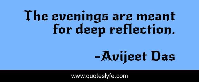 This page presents the quote "The evenings are meant for deep reflection.". Author of this quote is Avijeet Das. This quote is about deep-thoughts, life, meaning-of-life, reflection, evenings,.