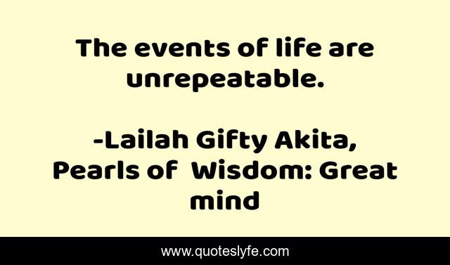 "Lailah Gifty Akita, Pearls of Wisdom: Great mind Quotes." Quoteslyfe.com, 2025. Fri. 05 Dec. 2025. <https://www.quoteslyfe.com/quote/The-events-of-life-are-unrepeatable-251387>.