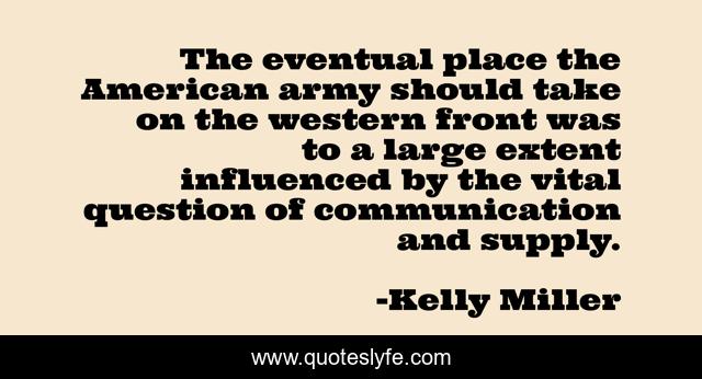 This page presents the quote "The eventual place the American army should take on the western front was to a large extent influenced by the vital question of communication and supply.". Author of this quote is Kelly Miller. This quote is about american, place, army,.