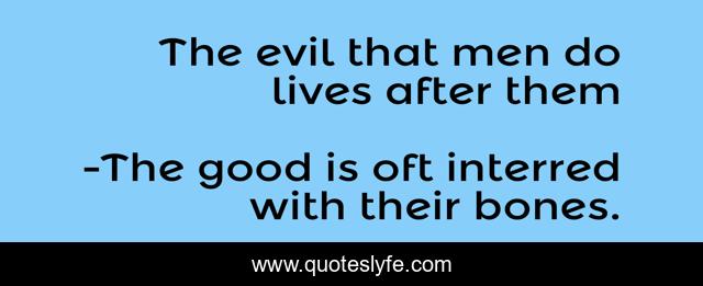 This page presents the quote "The evil that men do lives after them". Author of this quote is The good is oft interred with their bones.. This quote is about william shakespeare, julius caesar,.