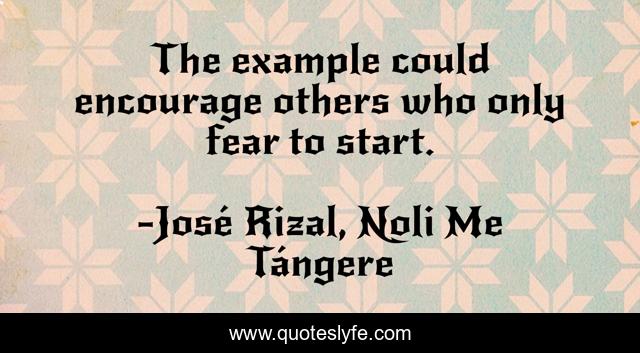 This page presents the quote "The example could encourage others who only fear to start.". Author of this quote is José Rizal, Noli Me Tángere. .