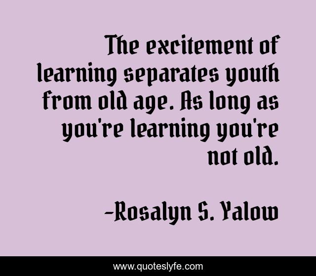 This page presents the quote "The excitement of learning separates youth from old age. As long as you're learning you're not old.". Author of this quote is Rosalyn S. Yalow. This quote is about youth, old age, learning,.
