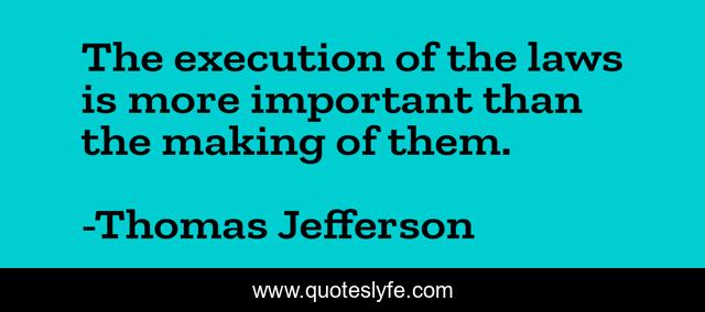 This page presents the quote "The execution of the laws is more important than the making of them.". Author of this quote is Thomas Jefferson. .