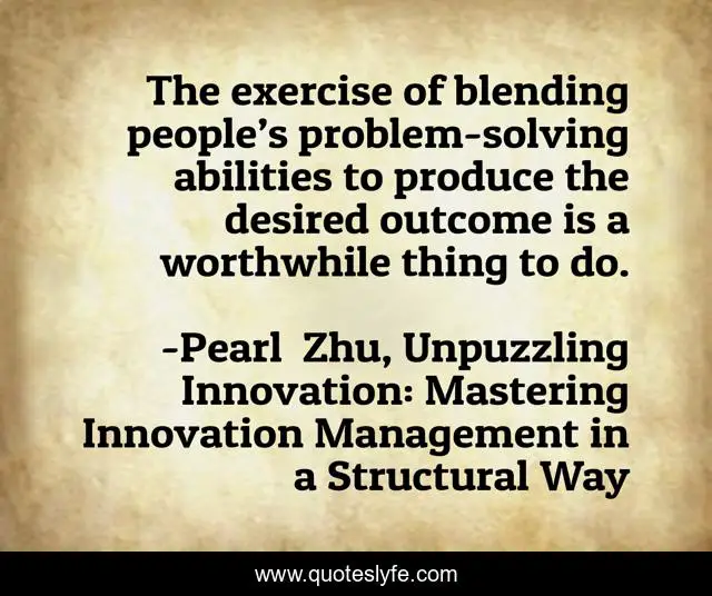 This page presents the quote "The exercise of blending people’s problem-solving abilities to produce the desired outcome is a worthwhile thing to do.". Author of this quote is Pearl Zhu, Unpuzzling Innovation: Mastering Innovation Management in a Structural Way. This quote is about creativity, innovation,.