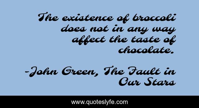 This page presents the quote "The existence of broccoli does not in any way affect the taste of chocolate.". Author of this quote is John Green, The Fault in Our Stars. .