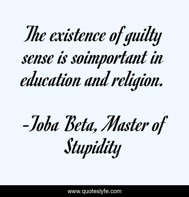 This page presents the quote "The existence of guilty sense is soimportant in education and religion.". Author of this quote is Toba Beta, Master of Stupidity. This quote is about religion, education, guilt, guilty-sense, sense,.