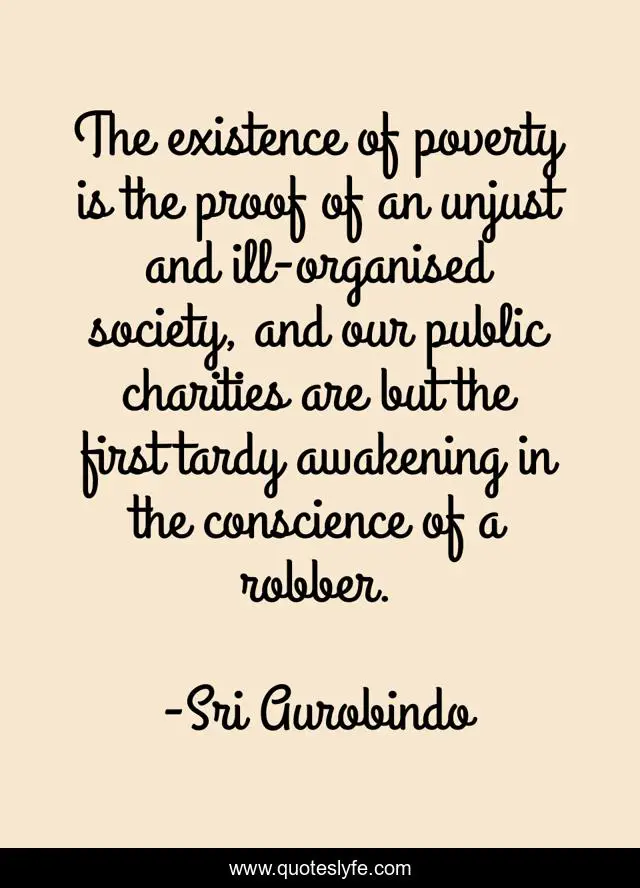"Sri Aurobindo Quotes." Quoteslyfe.com, 2025. Tue. 09 Dec. 2025. <https://www.quoteslyfe.com/quote/The-existence-of-poverty-is-the-proof-150625>.