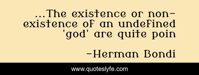 This page presents the quote "...The existence or non-existence of an undefined 'god' are quite poin". Author of this quote is Herman Bondi. This quote is about atheist, secular, secularism, atheism, humanism, humanist, pointless,.