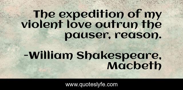 "William Shakespeare, Macbeth Quotes." Quoteslyfe.com, 2025. Sat. 06 Dec. 2025. <https://www.quoteslyfe.com/quote/The-expedition-of-my-violent-love-outrun-189844>.
