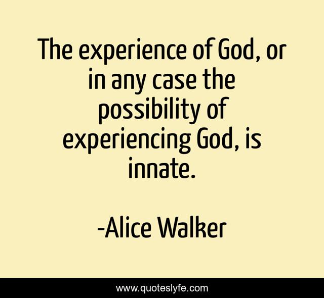 This page presents the quote "The experience of God, or in any case the possibility of experiencing God, is innate.". Author of this quote is Alice Walker. This quote is about god, innate, experiencing,.