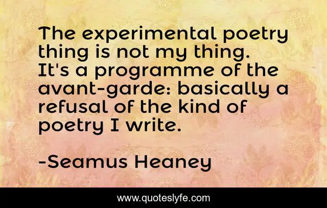 "Seamus Heaney Quotes." Quoteslyfe.com, 2025. Mon. 08 Dec. 2025. <https://www.quoteslyfe.com/quote/The-experimental-poetry-thing-is-not-my-326152>.