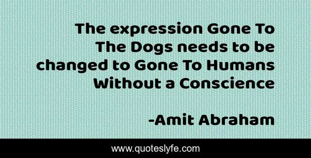 This page presents the quote "The expression Gone To The Dogs needs to be changed to Gone To Humans Without a Conscience". Author of this quote is Amit Abraham. This quote is about conscience, insincerity, betrayal, corruption,.