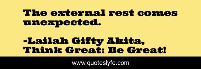 "Lailah Gifty Akita, Think Great: Be Great! Quotes." Quoteslyfe.com, 2025. Fri. 05 Dec. 2025. <https://www.quoteslyfe.com/quote/The-external-rest-comes-unexpected-85115>.