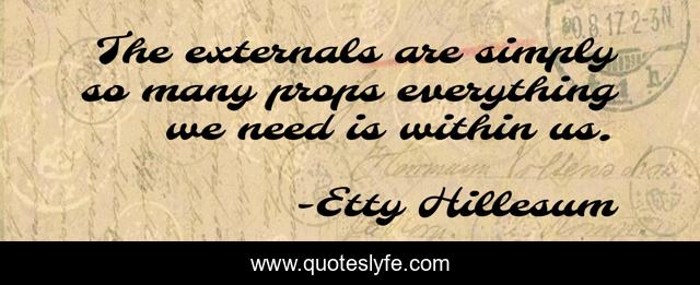 This page presents the quote "The externals are simply so many props everything we need is within us.". Author of this quote is Etty Hillesum. .
