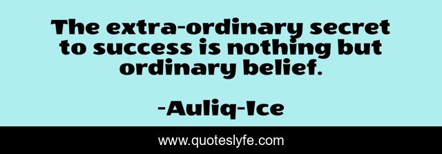 This page presents the quote "The extra-ordinary secret to success is nothing but ordinary belief.". Author of this quote is Auliq-Ice. This quote is about success, life-opportunity, hope, creativity, wisdom, life-success, dreams, inspirational, enthusiasm,.