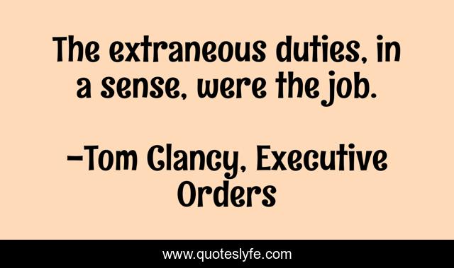 This page presents the quote "The extraneous duties, in a sense, were the job.". Author of this quote is Tom Clancy, Executive Orders. This quote is about job, vocation, extra-mile, calling,.