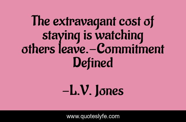 This page presents the quote "The extravagant cost of staying is watching others leave.-Commitment Defined". Author of this quote is L.V. Jones. This quote is about loneliness, love, commitment, affection,.
