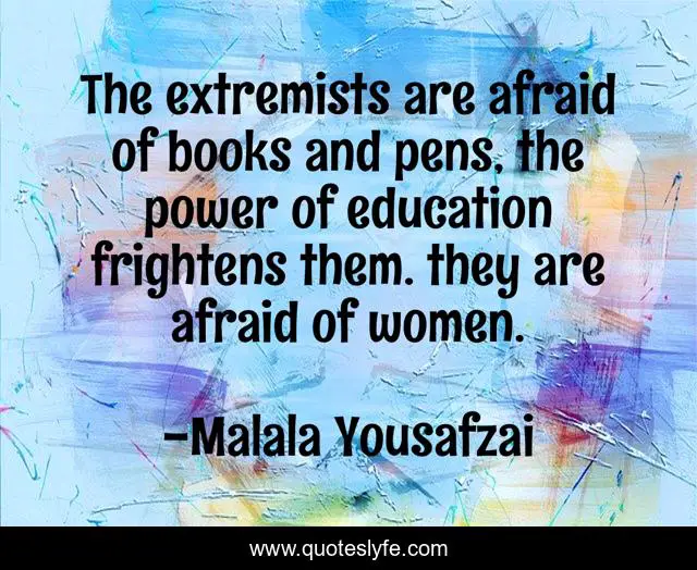 "Malala Yousafzai Quotes." Quoteslyfe.com, 2025. Sat. 06 Dec. 2025. <https://www.quoteslyfe.com/quote/The-extremists-are-afraid-of-books-and-33353>.