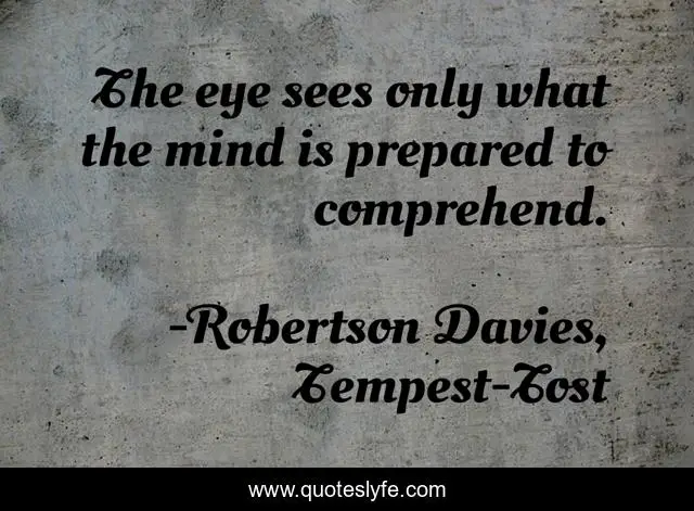 This page presents the quote "The eye sees only what the mind is prepared to comprehend.". Author of this quote is Robertson Davies, Tempest-Tost. This quote is about perception, knowledge, philosophy, reality, bias, belief,.